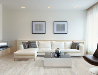 Ламинат Stone Floor инертен к жидкой PH нейтральной среде. Как и холодную плитку, его можно монтировать в «опасных» влажных зонах прихожих, кухонь и санузлов, но его поверхность при этом будет тактильно более теплой и комфортной для ходьбы без тапочек.